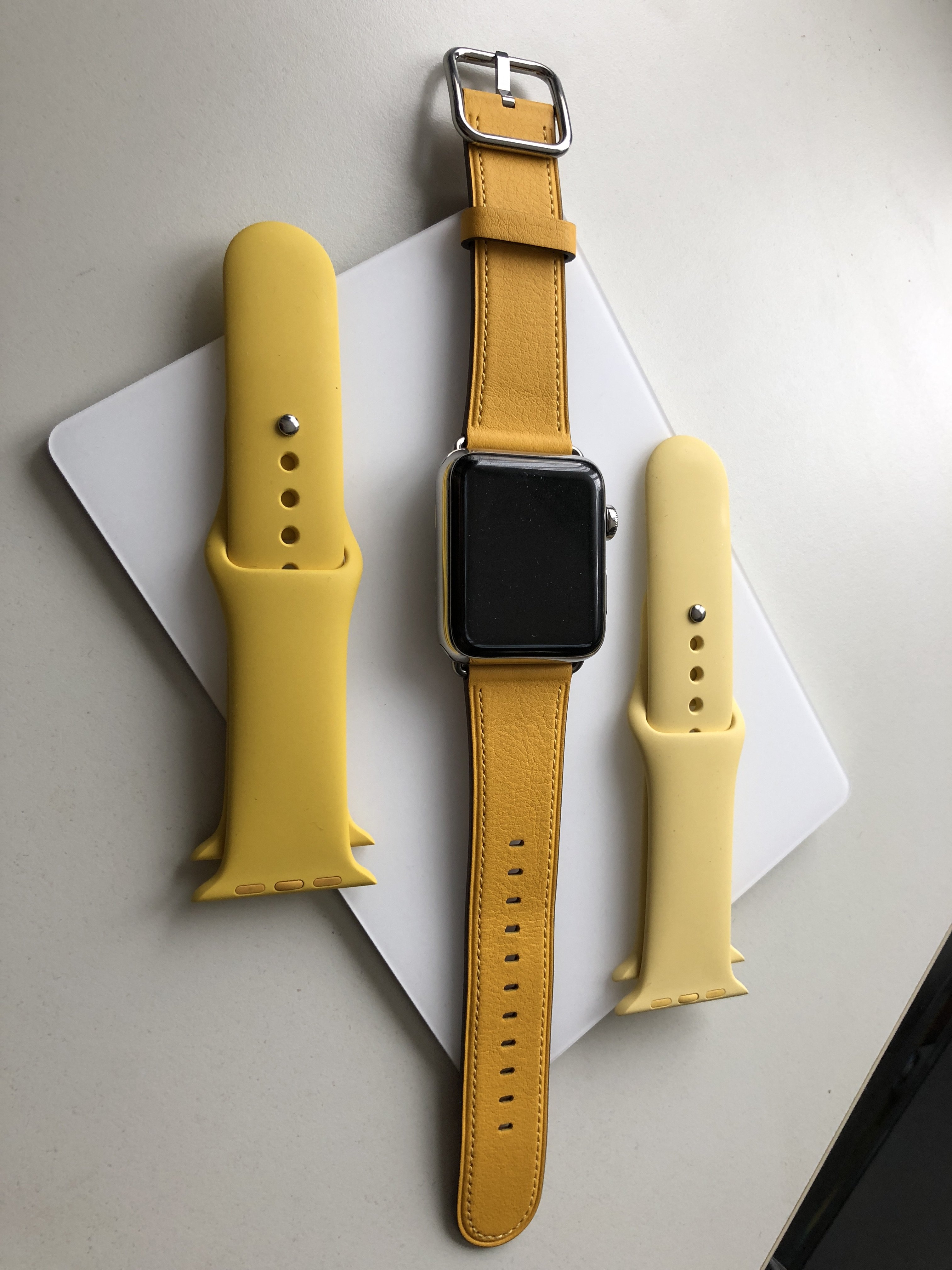But yeah, the Sunflower is really special. To me, Spring is actually the second nicest yellow released yet, nicer than Marigold and the Hermes Lime. I imagine it would be very, very hard to find a used Sunflower as I‘m sure the number sold is quite low (most people buy leather straps just in boring colours like black and brown) and why would one sell this thing of beauty? If I were you, I would get Spring Yellow and see if you like it; Apple‘s return window and policy is quite generous and it‘s not that easy to judge a colour from pictures on the internet, especially as the colours change quite profoundly under different lighting conditions.