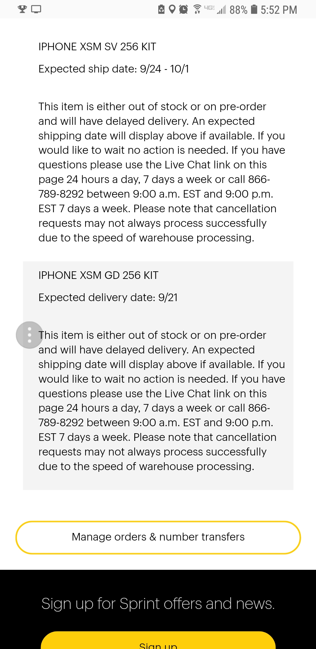 I pre ordered 3 iPhone X’s Max I got my order number for all three phones but two of the three doesn’t show up with I try to check my order status