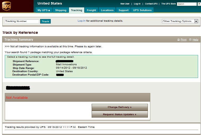 Hello, everyone I've been reading the posts and wanted to share something. I just tried the Track by Reference thing on Ups.com and my new Sprint number has come up with one package. All of the details aren't there like a tracking number yet, I've been trying this all day, and now info has started to populate, by the way it's 10:37 EST where I am. I ordered on 9/14 at 4:15am due to Sprint.com crashing for the first hour. I'll keep you all updated. It's coming up under Mail Innovaions.I ordered another phone on 9/15 at 6am EST, the CSRs told me that phone would ship in two weeks.....that phone comes up as well under Mail Innovations, thought I'd share.