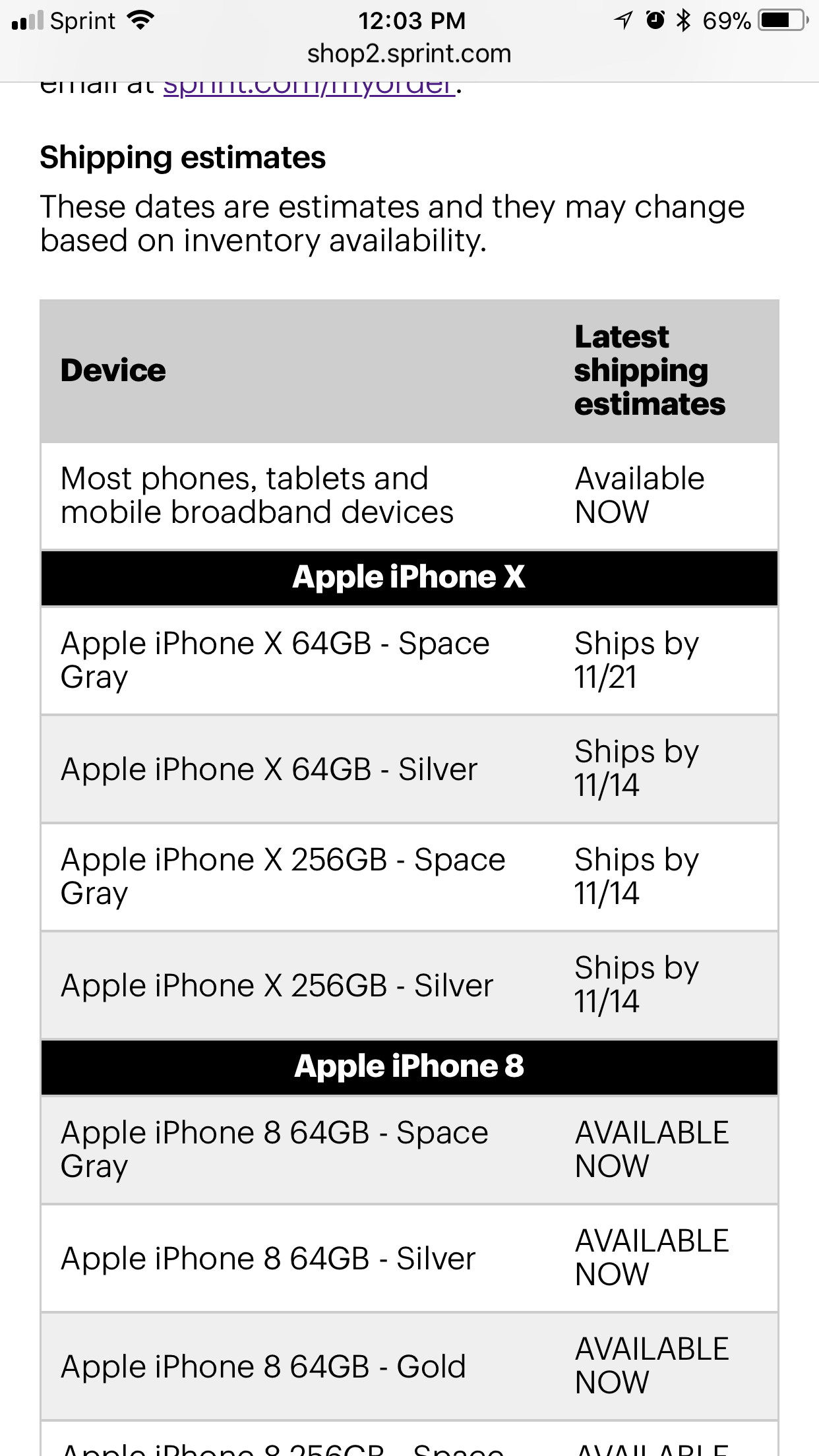 I was one of the first to order. Per Sprint, my order is stuck pending and will never process They’re telling me there is no possible way to honor my original delivery date of 11/3. So disappointed!