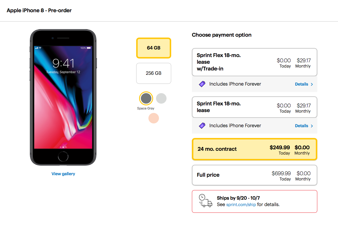 Did anyone have any luck preordering the 8 or 8+ with the 2 year contract price? Apple still shows the 2 year contracts as options through Sprint.