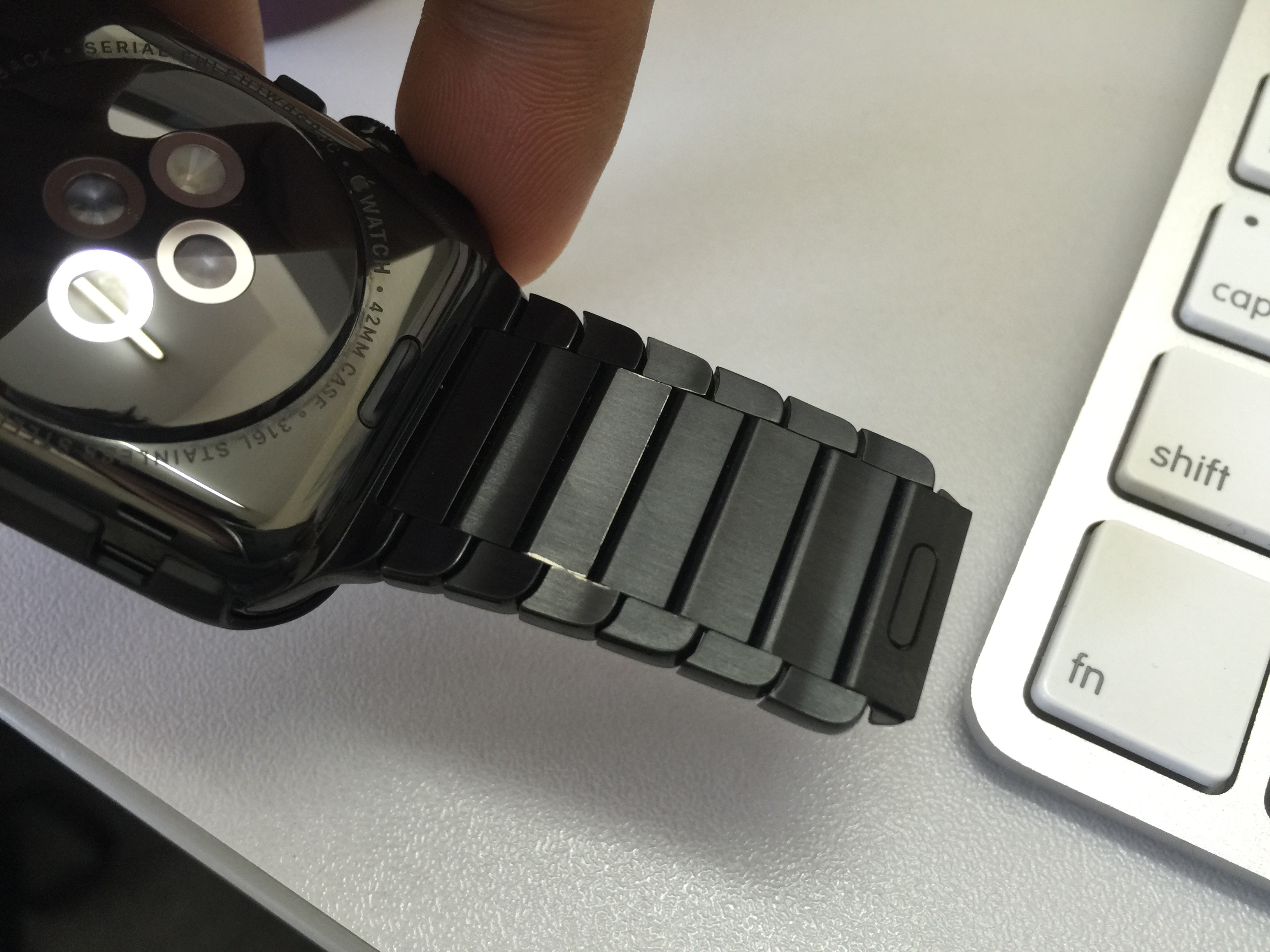 I have had my watch for about two weeks now and have noticed something interesting on the inside of the Black Link Band. I really doubt that this is normal and do you think Apple will issue me a replacement if I showed them the peeling?