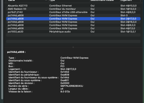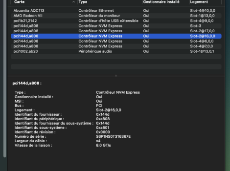 i m on a MacPro 5.1 2010 - Monterey 12.7.1 with Martin's Package - 0.9.5 (thx to him) and below here s my pci configuration.. as you can see ssd with 2b2 firmware (with you can't update with newer firmware (try with magician)) are like limited in read/write speed when the 4b2 firmware let the speed go up to max. AM I RIGHT or is there a problem of pci bandwidth limit or anything else ?