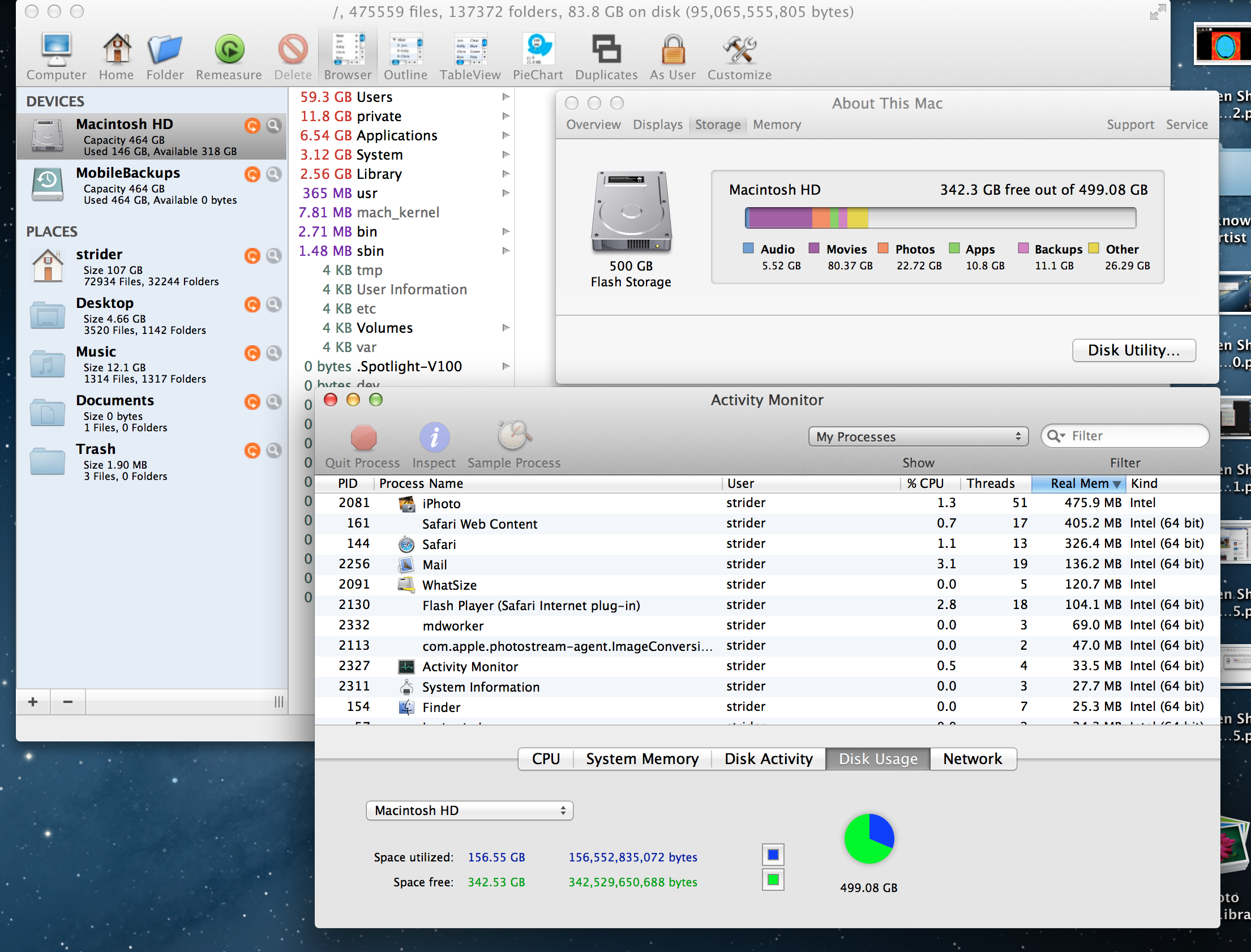 and now on the new mbp-rd its only reading 464 GB out of the 512 ,.and in the activity monitor its showing that I AM USING 151.61GB ???