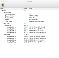 Thanks, I purchased the MBP 2011 because of its Sata III which can maximize the read/write speed of the M4 (over 400Mb/s), but in fact it's only around <250Mb/s, so what is wrong here?I wouldn't worry about it. Xbench doesn't reflect real world performance very well. And results are quite different every time I run it.