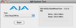 Just installed a brand new OWC Mercury Electra 6G into my early 2009 Mac Mini and while boot up seems quicker and app launching noticeably faster, I ran AJA System Test and the results were disappointing to say the least. I ran it multiple times with various configurations of Video Frame Size and File Size and consistently only received avg. write of about 106 MB/s and read of about 130 MB/s. I have my 2 HDD in my new 2011 Mini Server set up RAID 0 and I'm getting much better results than this with 7200 rpm HDD.
