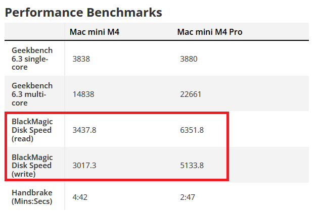 My new M4 iMac with 2TB SSD gets about 3300 write and 3000 read (5GB test).Still no benchmarks of the M4 non-pro with 1TB?