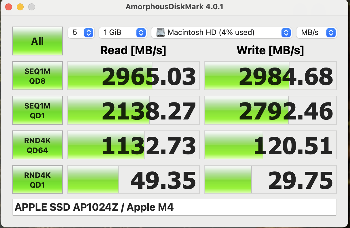 Mainly to compare what swap performance would be, the QD1 difference seems negligible but QD64 more significant. Then again real world impact would probably not be significant enough to warrant the upgrade price (and if hitting swap you’re already seeing performance degrade significantly)🤔