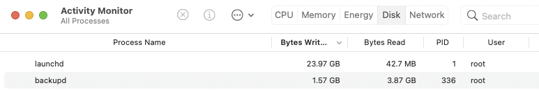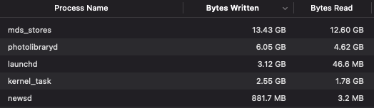 I'm seeing high writes and reads for these processes after a restart of my M1 MacBook Pro about 8 hours ago: