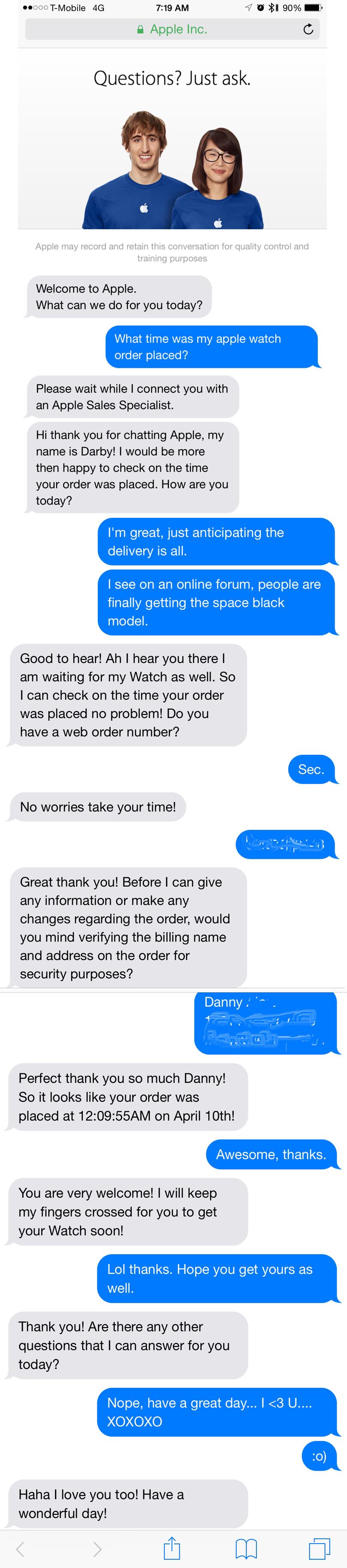 I found out my time that I ordered the other day by asking apple in chat. Thought it might bring you a smile.