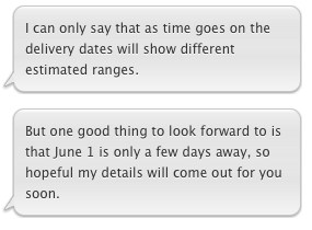Ordered on 4/23. Was given the vague June ship date. Then it was June 22-29, then yesterday it switched to the week before. Last night I was charged and it is now preparing for shipment.