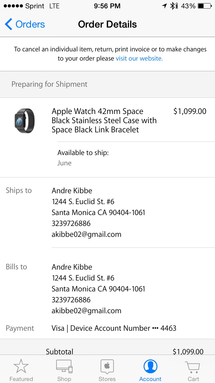 Huge warning to everyone now that Apple seems to have its stuff together... CALL YOUR BANK. make sure that charge doesn't get declined. Apple Pay could have expired, being charged from California, the amount of the charge, ext. Mine declined three times because of those reasons. I hate Bank of America. Just want you all to get your watches! I honestly did not expect any of those rejections. Dont want this to happen to you!