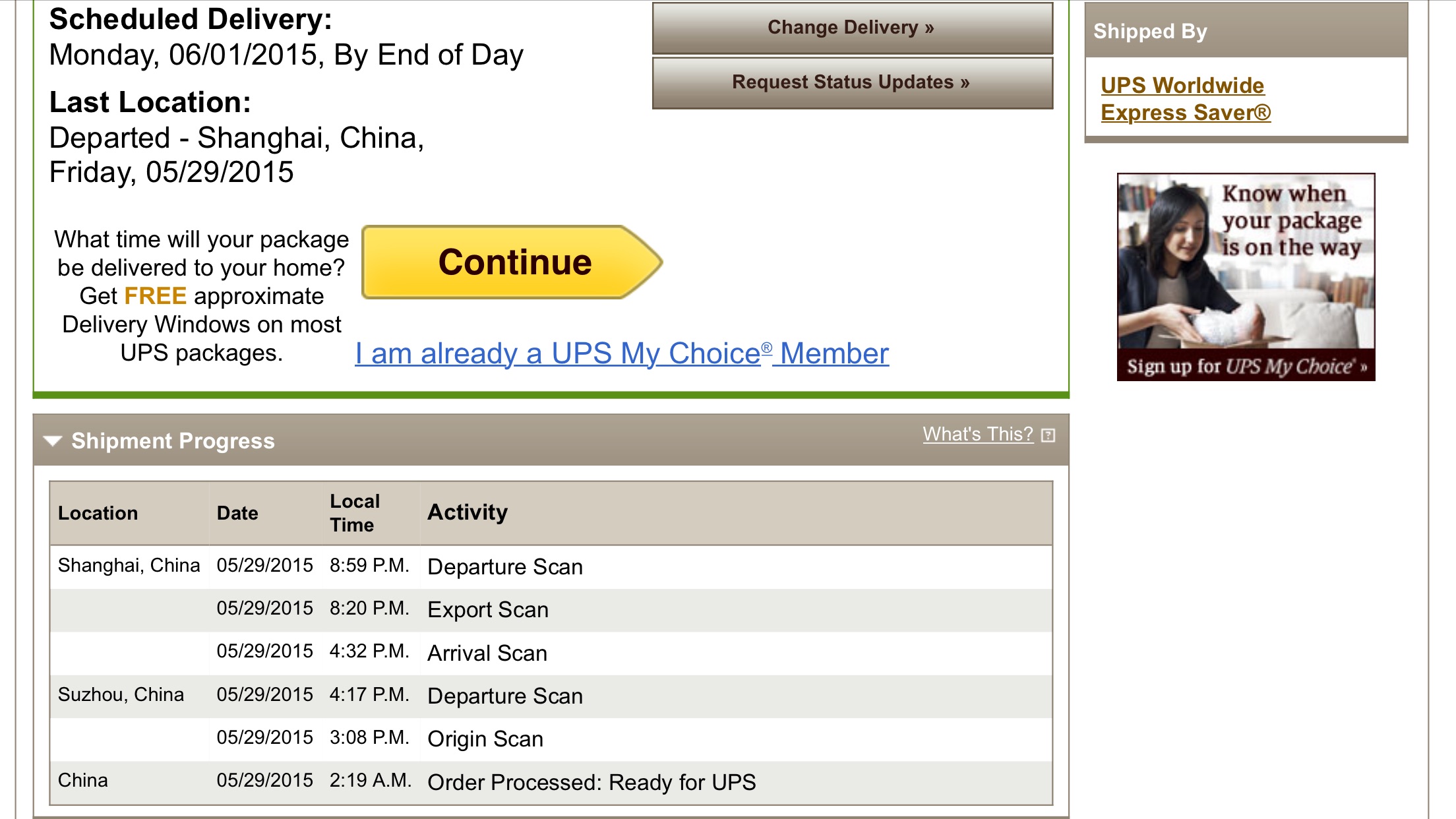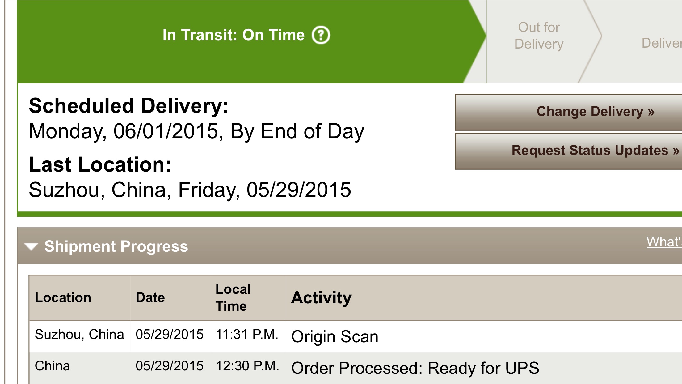 05/29/2015 8:50 P.M. Your package is delayed at export and is awaiting release from customs.