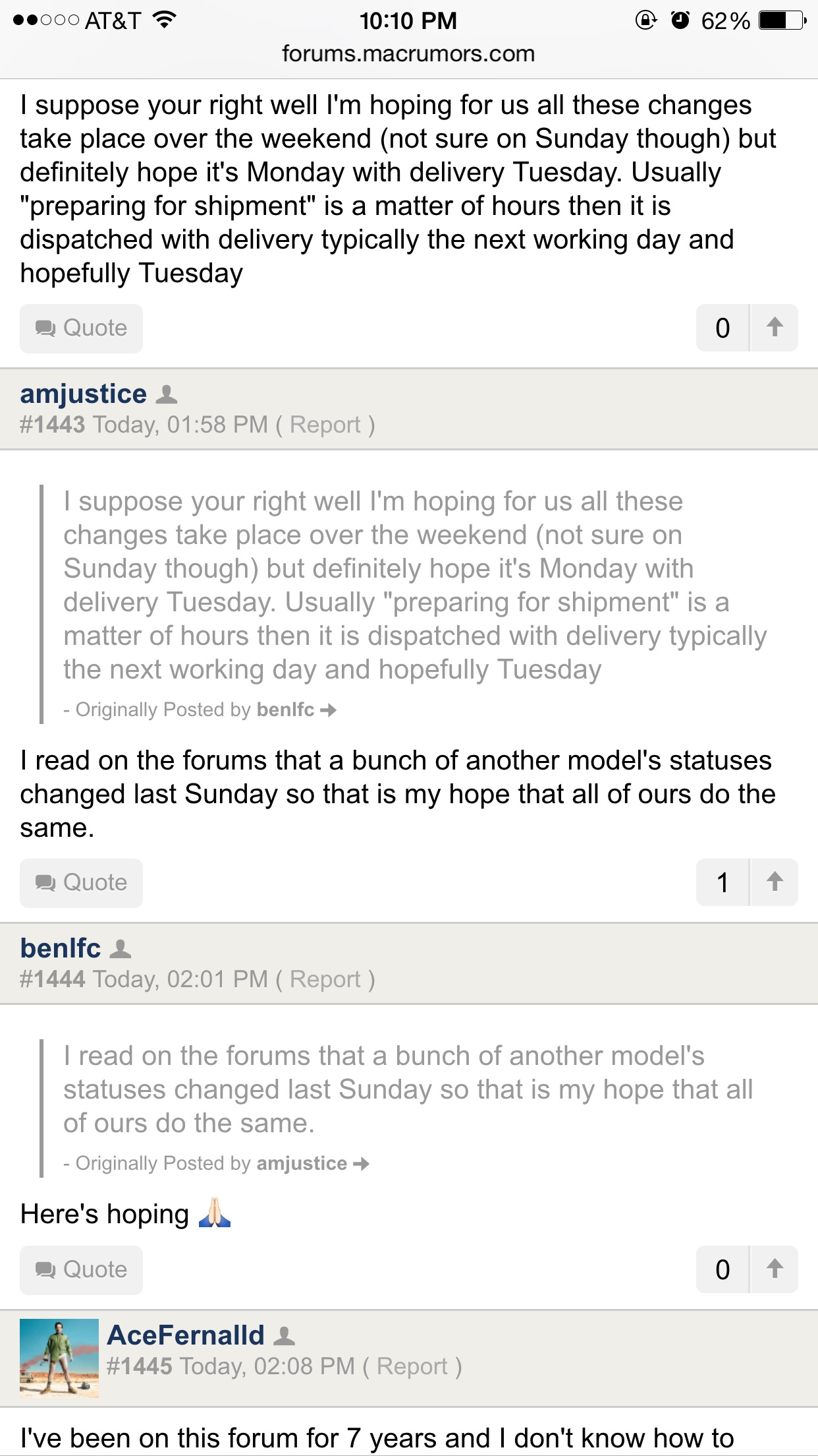 As soon as word comes that you guys' orders are moving, that is when I'm placing mine. Can't be too much longer now........