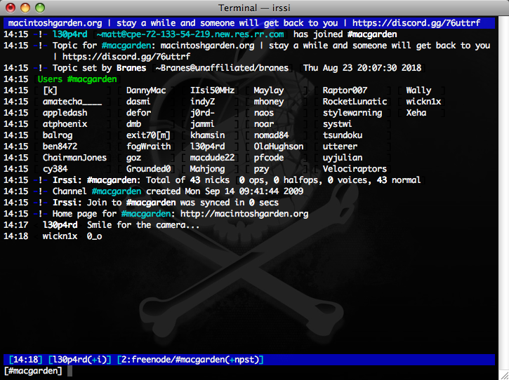 You can place the Irssi icon/launcher on the dock next to the trash can if you want.