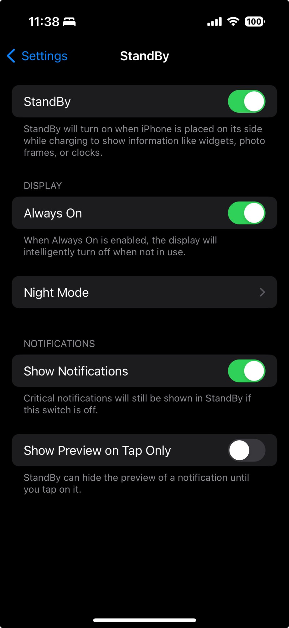 I too hope Apple makes this more easily usable and makes it work both ways for people that want it. From what I can tell thus far, the Always on Display selection has no use at this point on a iPhone 14 pro. At least not for Standby.