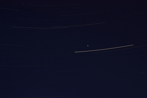 This also points to another issue with star trails - the D7000 was tied up for six hours. Having some older bodies (a D60 and two D70s) lets me keep occupied while the camera doing its thing. Eventually I just went to bed and let the camera click away.