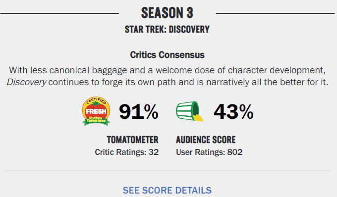 "Accepting" is probably one of the more apt ways to describe it.Season 3 doesn’t seem too bad. Probably because I have normalized myself with the series. Watching season 1, I was quite upset as it doesn’t feel like Star Trek. It’s basically Michael Burnham doing and capable of doing everything. Didn’t feel like Trek at all. But now with season 3, I have accepted it, and can enjoy the shows more.