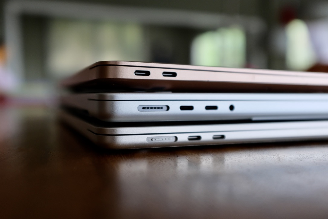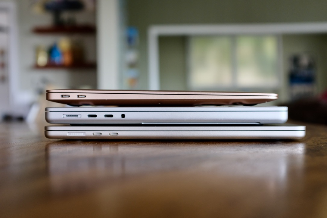 The photos are also helpful in showing the difference in thickness of the different laptops (especially the first photo).