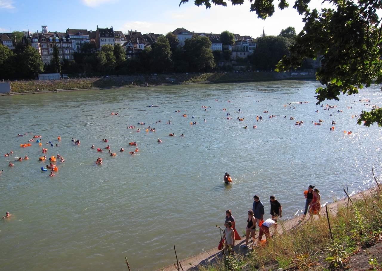 In a few days, it's the official Rhine swim in Basel. This is even worse than swimming and not moving - you swim and go backwards. it's virtually impossible (for me, anyway) to swim against the current. A few hardcore swimmers try but really all we do is walk 2-3km upriver, get in, and float back downriver (with our clothes in a drybag/"wickelfisch") before getting out (and receiving a medal for not drowning if it's on the official day).