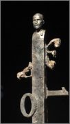 What if the "appendages" were incorporated into the stand itself as negative space? In other words, make them "holes" in the stand. The alpha-numeric allusions would still be there, but in a more minimalist design.