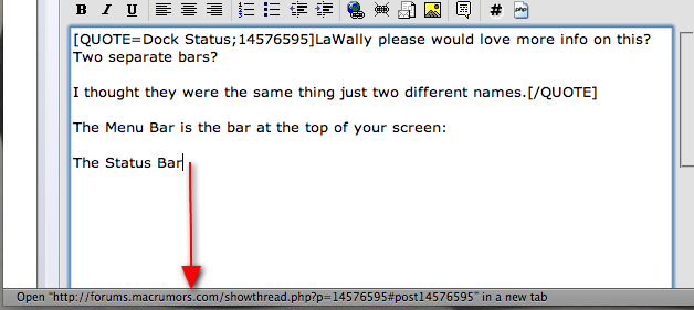 status bar" that holds "status items." Confusingly, there is only one of these in OS X, the system status bar, which is always at the right side of the menu bar. Theoretically, Apple could enable others, but right now this is not supported. And this is developer-speak; only people who read the developer docs would understand this special use of the term "status bar." That is why the developers would use the term.