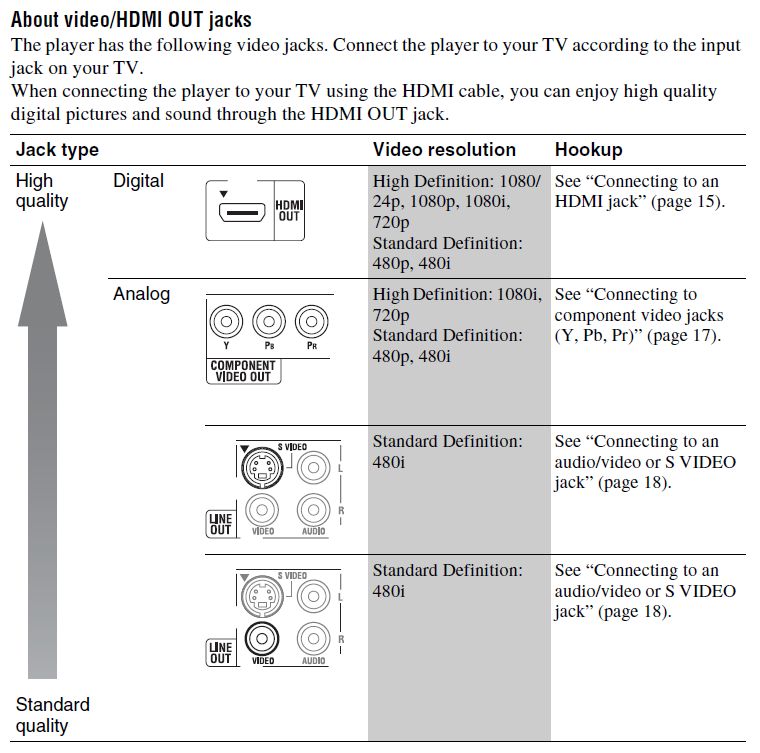 {1080/24p, 1080p, 1080i, 720p, 480p, 480i} on any of (at least)