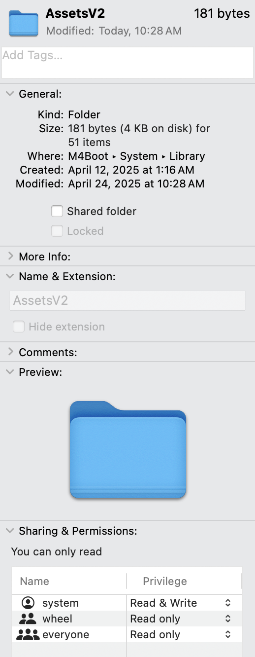 Now, I have a locked, empty folder with the same name that replaces the original Apple folder. Here's what it looks like: