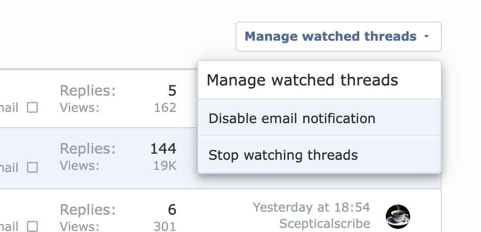 Is there a way to stop receiving email notifications re: threads I am watching and/or participating in?