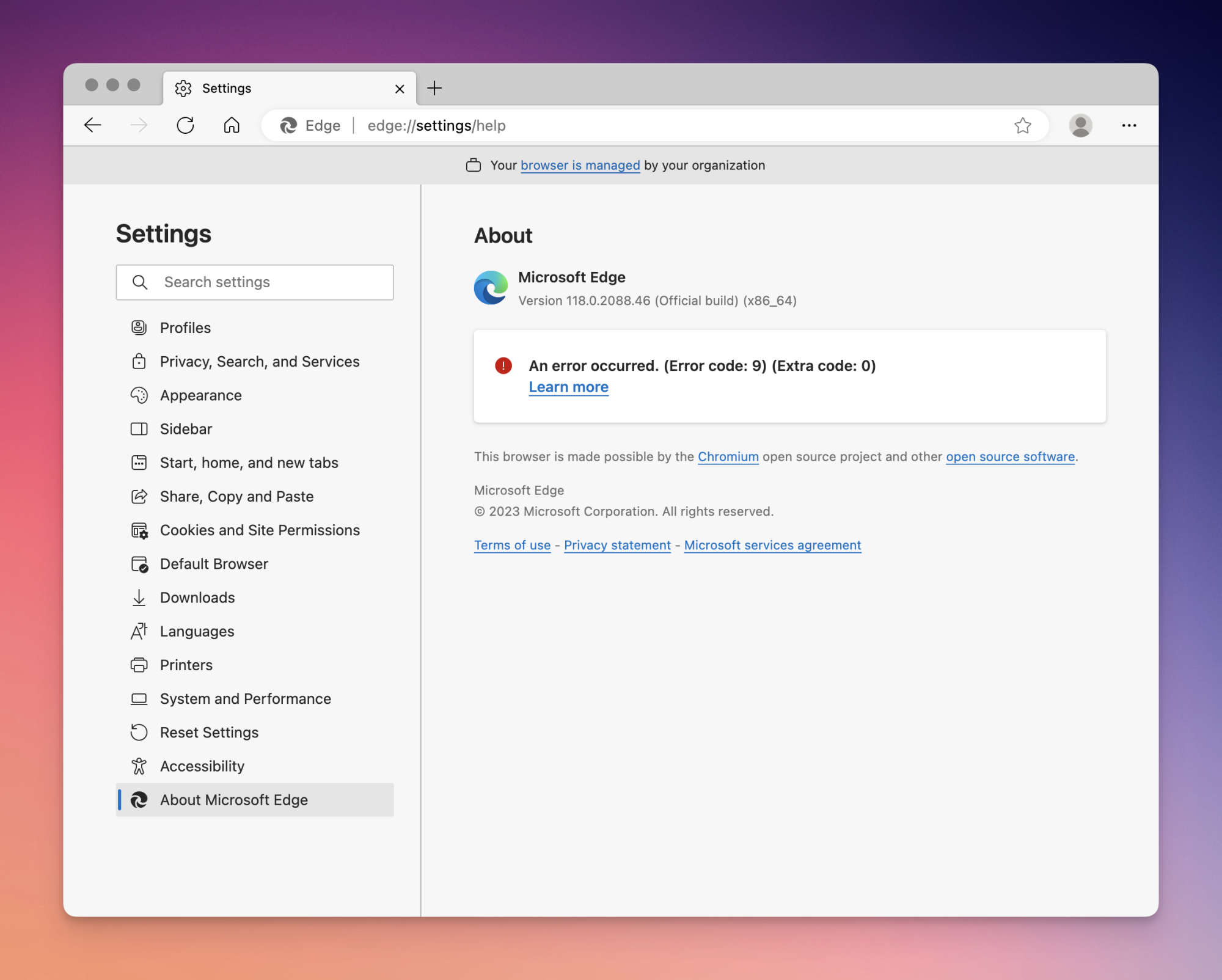 I'm now running Version 110.0.1587.69 (Official build) (x86_64). You can download older versions of Edge