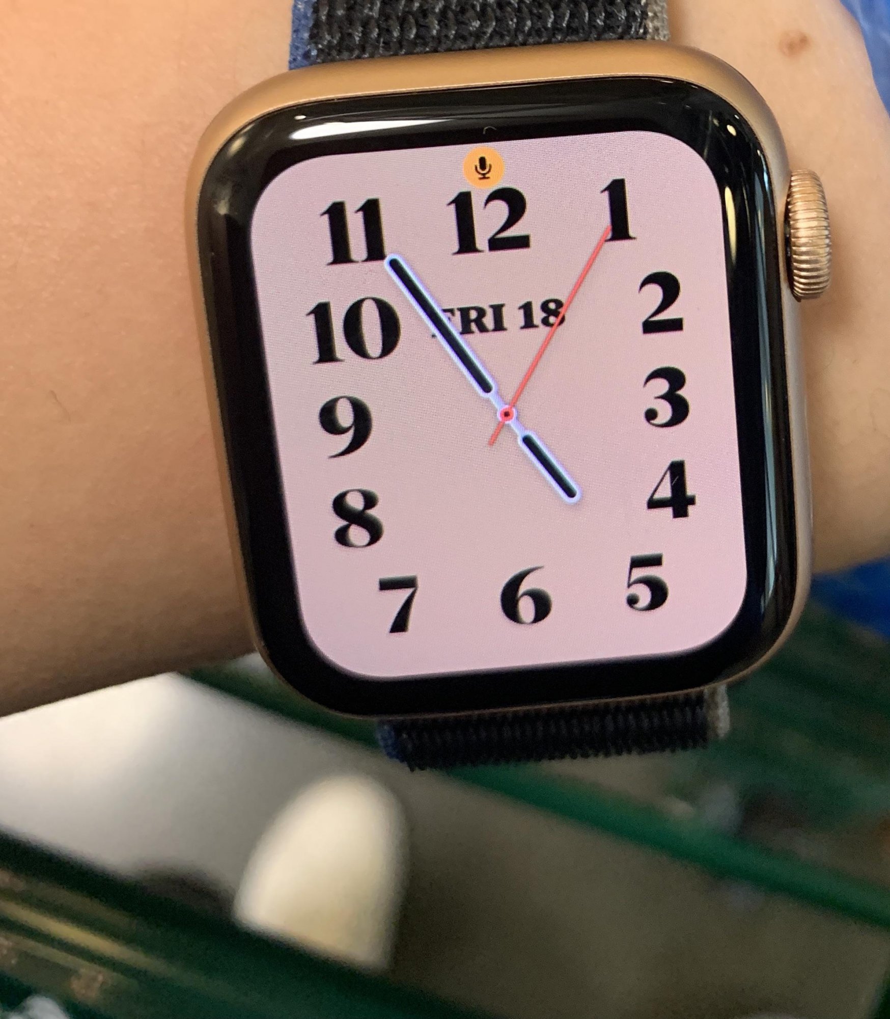 After updating to WatchOs 8.1, any time I put my watch on after I've left it on the charger this odd microphone icon shows for a second then vanishes. It's not Siri since Siri has an actual interface that comes up, and It's not raise-to-speak since just raising my watch to my face doesn't make this symbol appear. It's only done this since the 8.1 update, and I've never seen it before. bug?