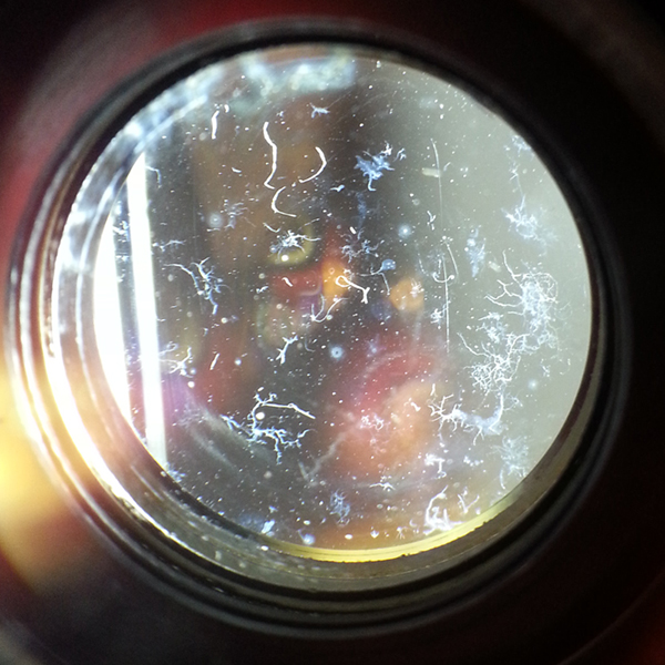 I have seen similar markings on the interior and exteriors of lenses stored in high humidity. The fungus is well known and eats the anti-reflective coatings on lenses.
