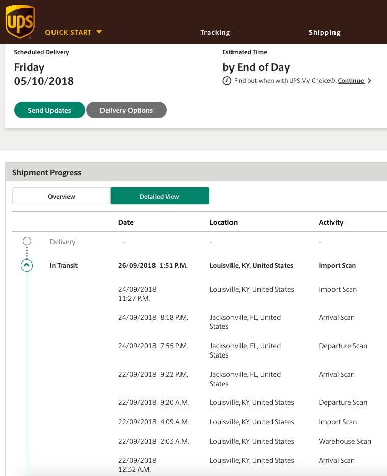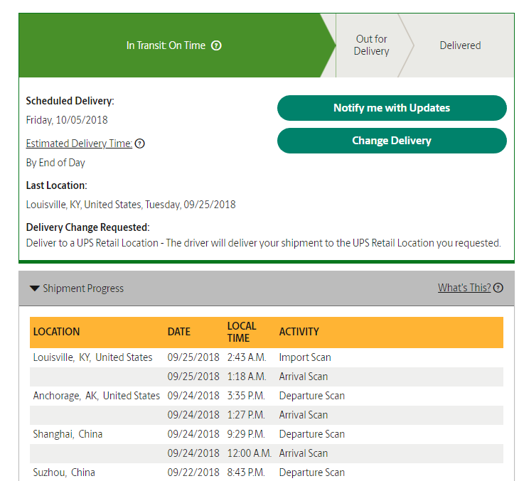 Now the scheduled delivery is 10/5. That's Friday of next week.