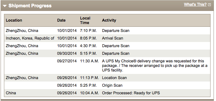 With a UPS shipment progress (not really sure it can be called progress... maybe negative progress?) like this, I can only hope that their system is not showing the actual path of the package...