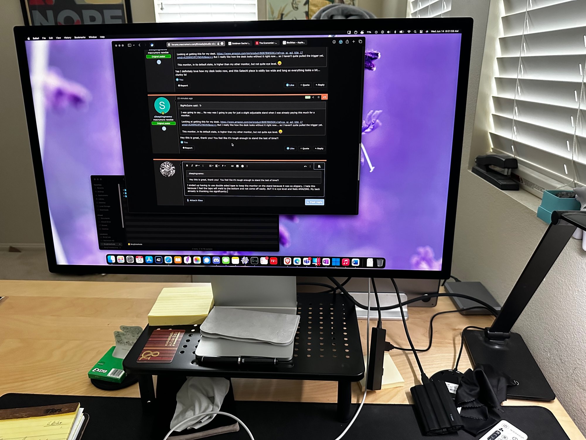 I made the mistake of getting the Studio Display with just the tilt, and have ultimately found it to be a bit too low for me. Genius Bar said to switch it to a raise/tilt stand will be roughly $600, so I'm searching for other solutions!