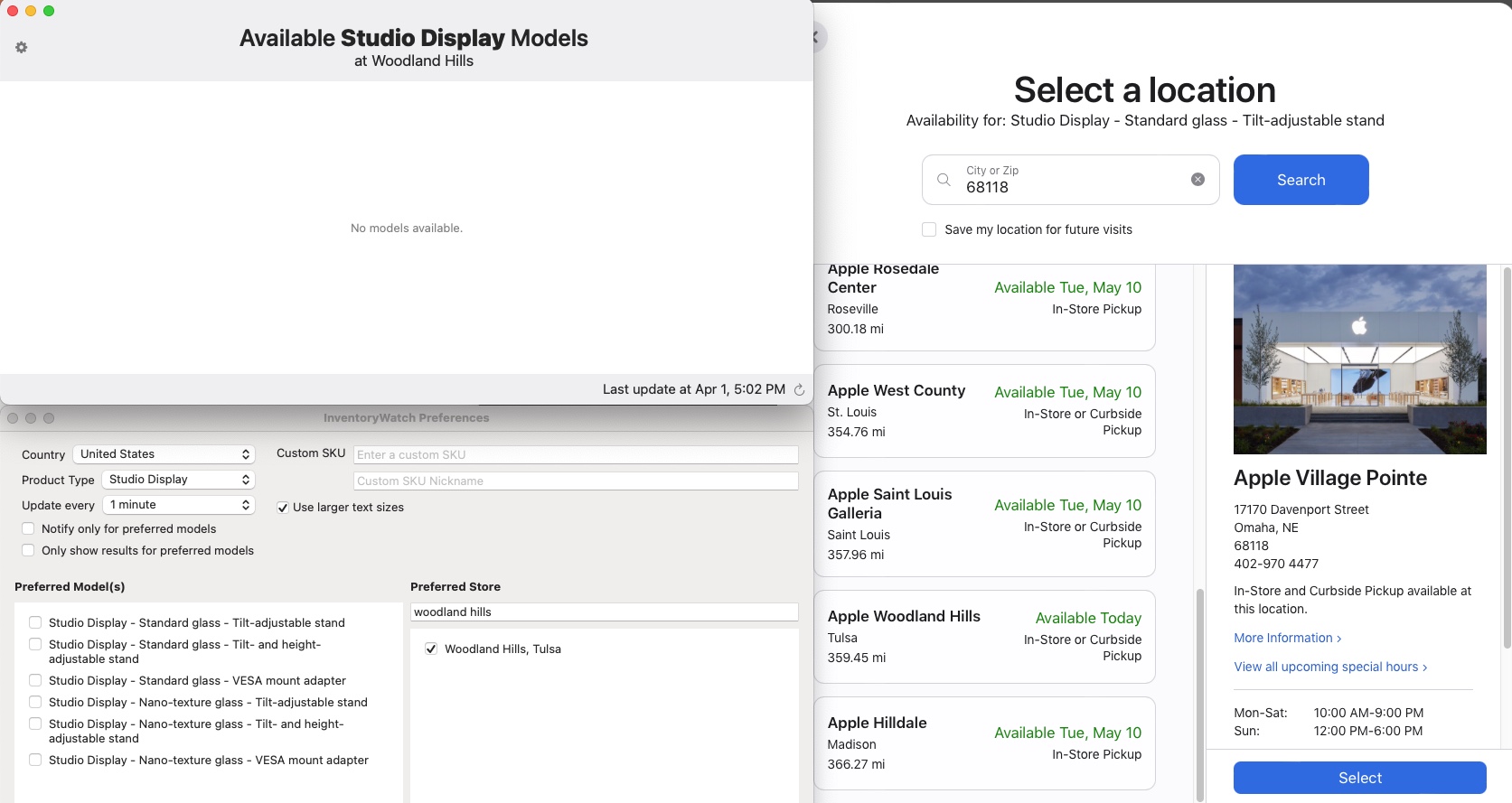Im not certain, but maybe you need to click the checkbox for a preferred model(s)?. The app has been seeming consistent with Apple Store website for me, at least in the rare instances when there is actually a model available. Haven't seen any for several days.View attachment 1985043