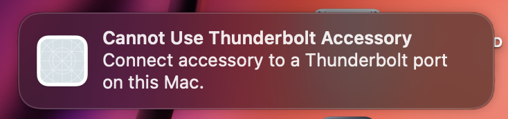 I have the Apple Thunderbolt 2 to Thunderbolt 3 adapter and when I plug it into the display a pop up says that it cannot read the accessory.
