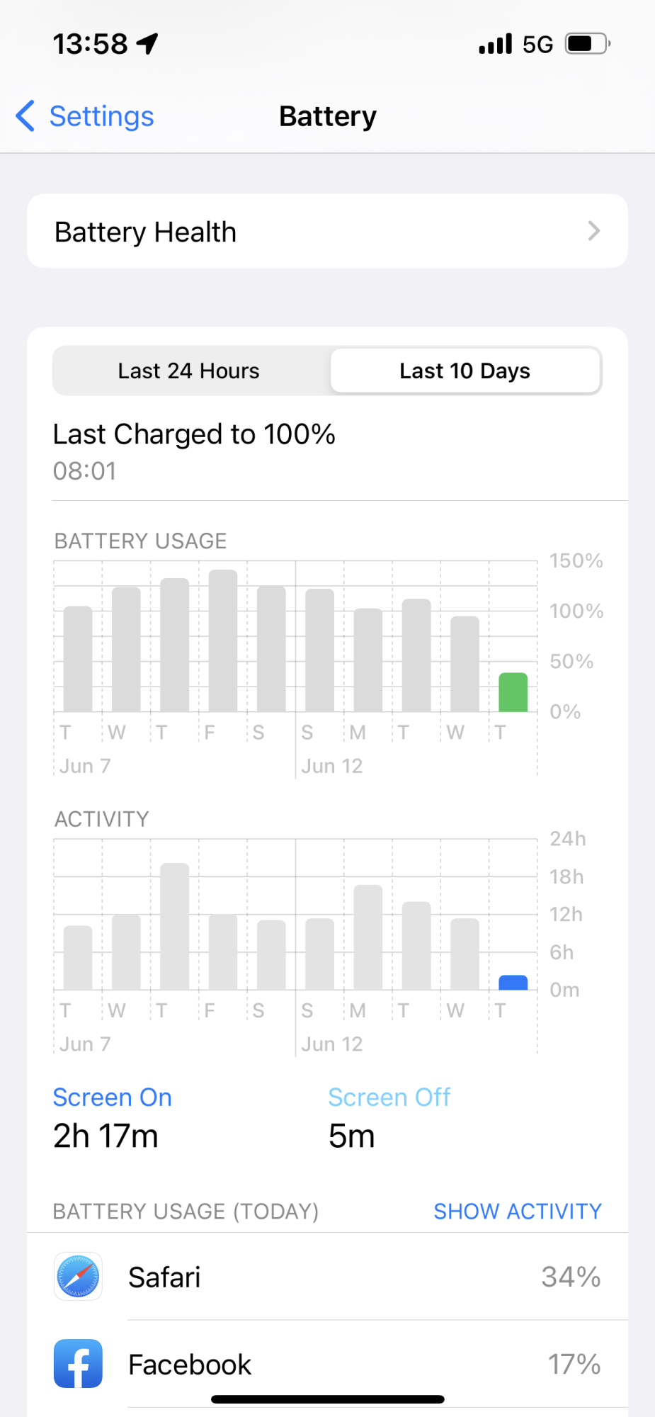 As you can see on one of the days I used a full charge I only got 7:25 hours of on screen time with instagram using 36% of my battery with 1:46 hours of on screen time. That seems a bit much.