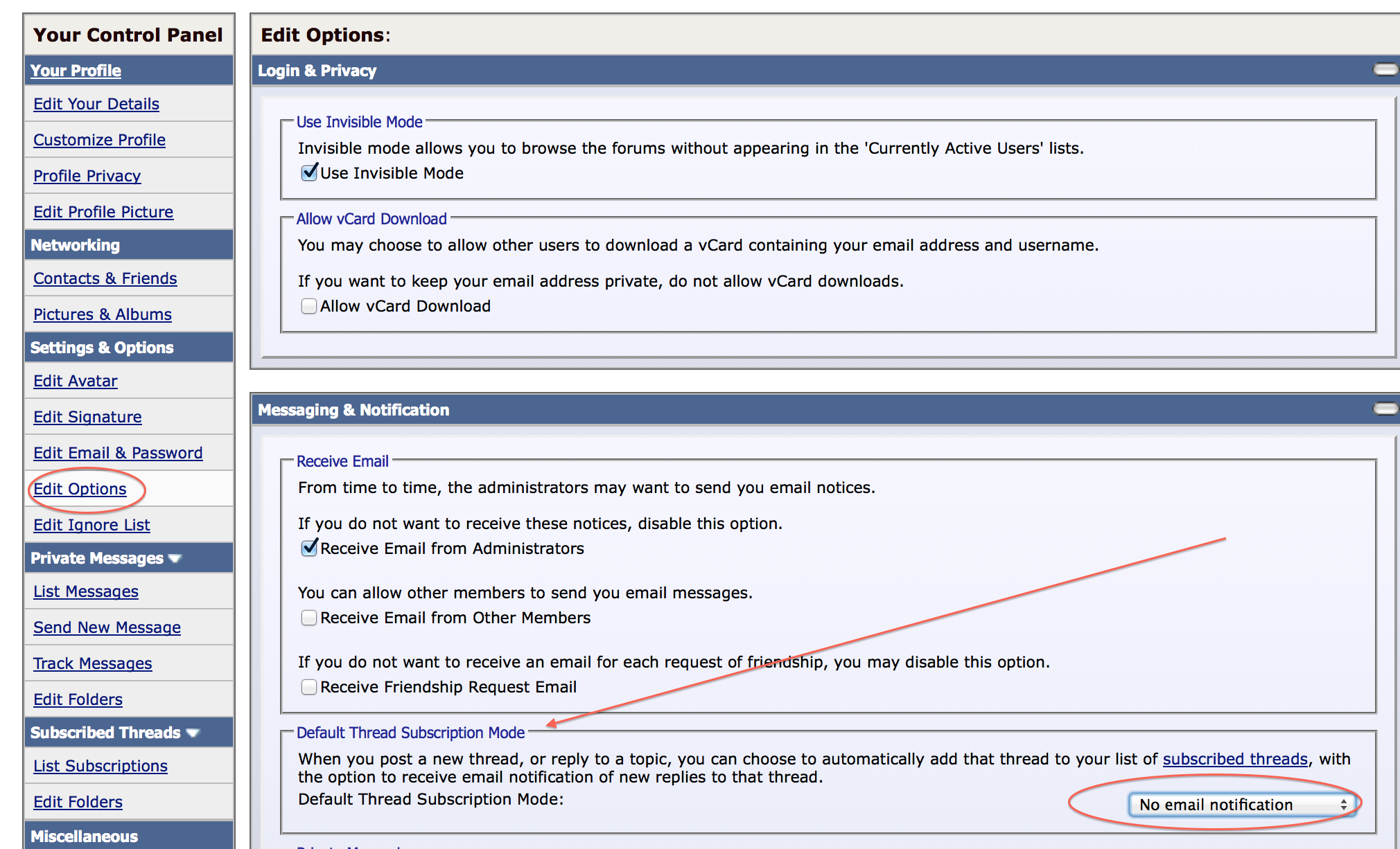 GGJstudios said: Edit Options > Default Thread Subscription Mode View attachment 497770 Click to expand... Thank you very much GGJstudios said: It won't help with your subscribed threats, however. Click to expand... Edited ��