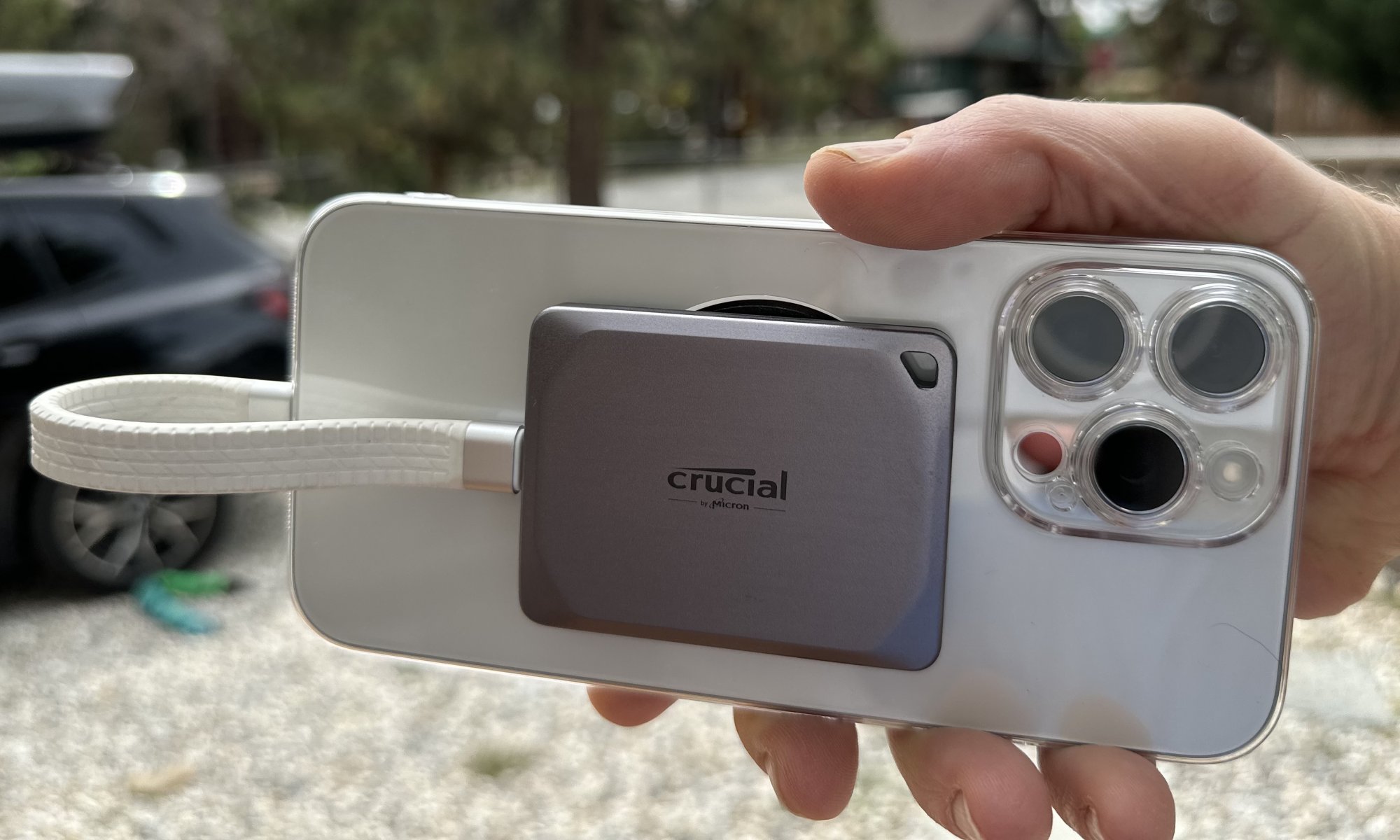 A super minimal 4K 60 rig. I’m using a Crucial X9 2TB, mounted via MagSafe. Can get 144min for 2TB. The X9 really good bang for buck. $70 for 1TB.