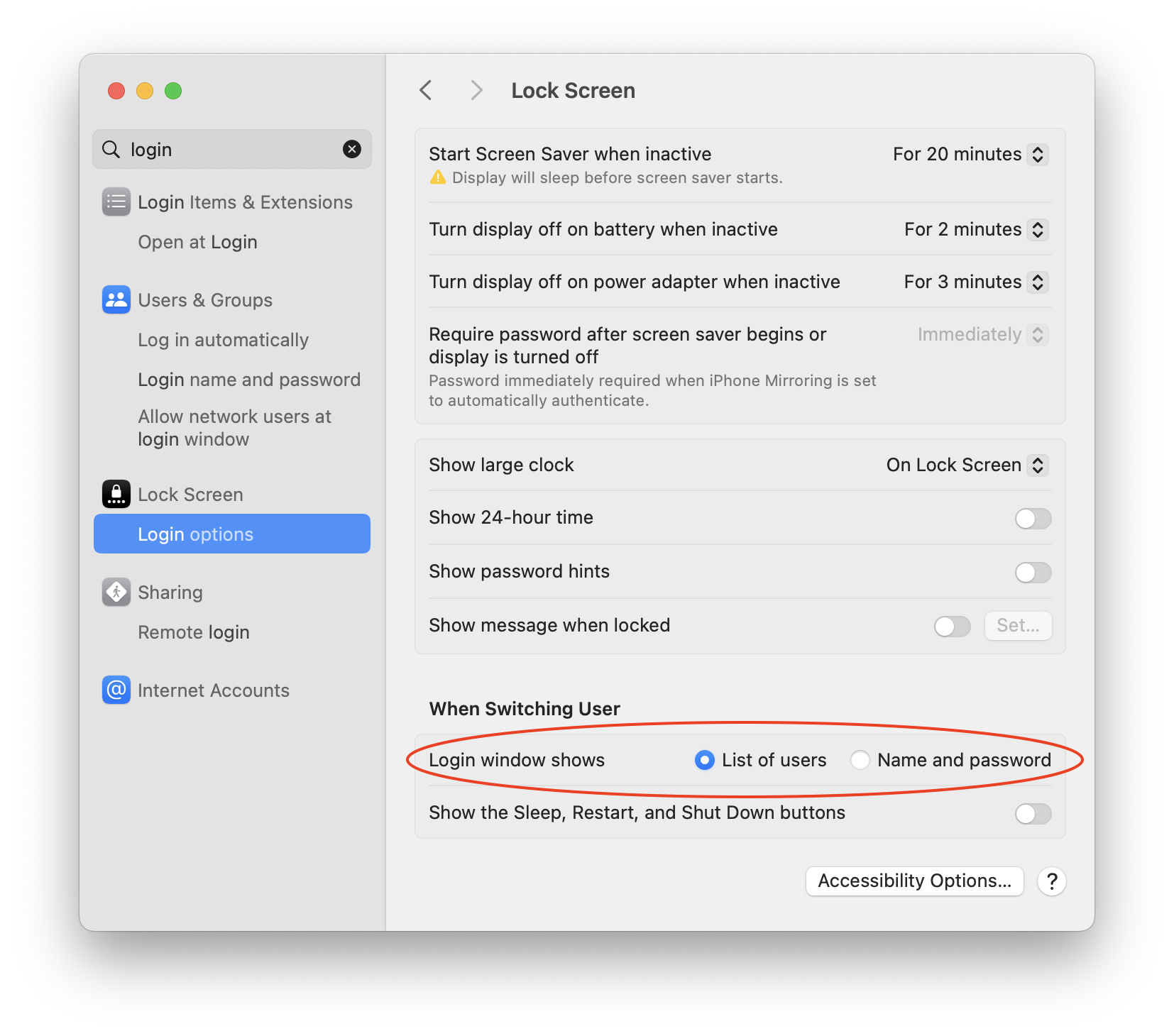 That is exactly how mine is set, but still only see the user that locked the machine or that was logged in when the computer went to sleep.Don't click on it. That selects it. Hover over it to expand the choices.