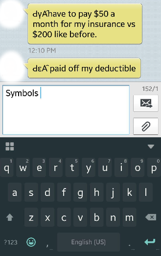 I have an iPhone 6S and my friend has a Samsung and I've noticed this problem happening now for the longest time, since I had my 5S which was last year. We both contacted our carriers and they have done resets, but nothing has worked. She has T-Mobile and I have Verizon. Every once in awhile, I would send her a text and she would see those strange symbols. Any idea what could be causing it?