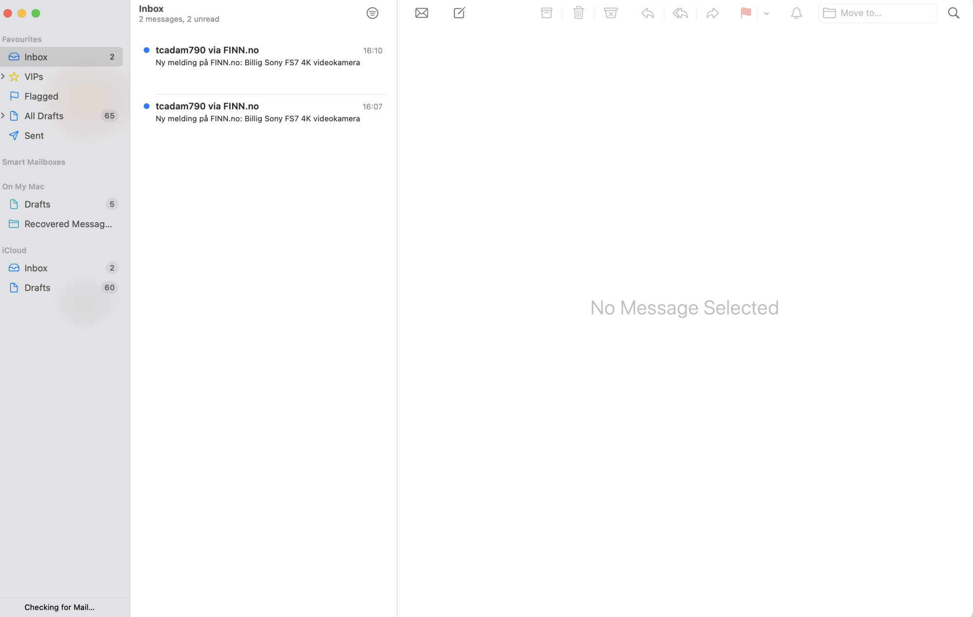 It says checking for mail. I logged out of iCloud and back in to see if that solved the problem. Now I have no emails, BUT I received 2 emails now an hour ago. It's so weird