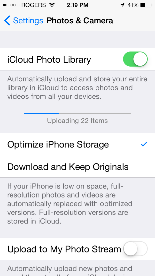 It has just been on this (Image) 'uploading 22 items' for an hour. Nice try Apple. This app sucks.