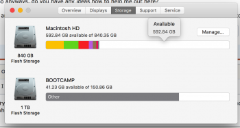 Hmmm.... I dunno then.This machine is running the beta of Mojave, but the issue precedes it. TM is turned off, and running `tmutil listlocalsnapshots` confirms that there are no local backups either.