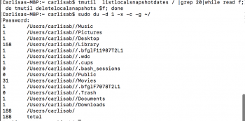 Code:tmutil listlocalsnapshotdates / |grep 20|while read f; do tmutil deletelocalsnapshots $f; done