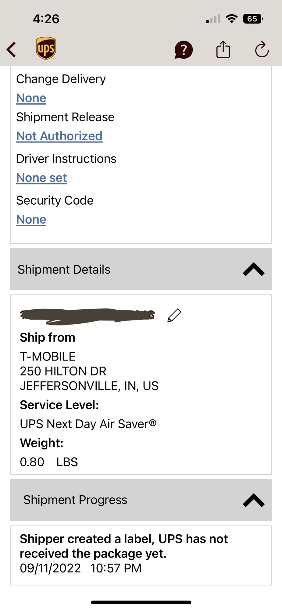All UPS flight out of Louiseville wont depart until 12:30AM , UPS all flight to around America will departed between 12:30AM - 4AM KY times , so you still have around 6 hours to Ups update picking up your phone to be delivery tomorrow.