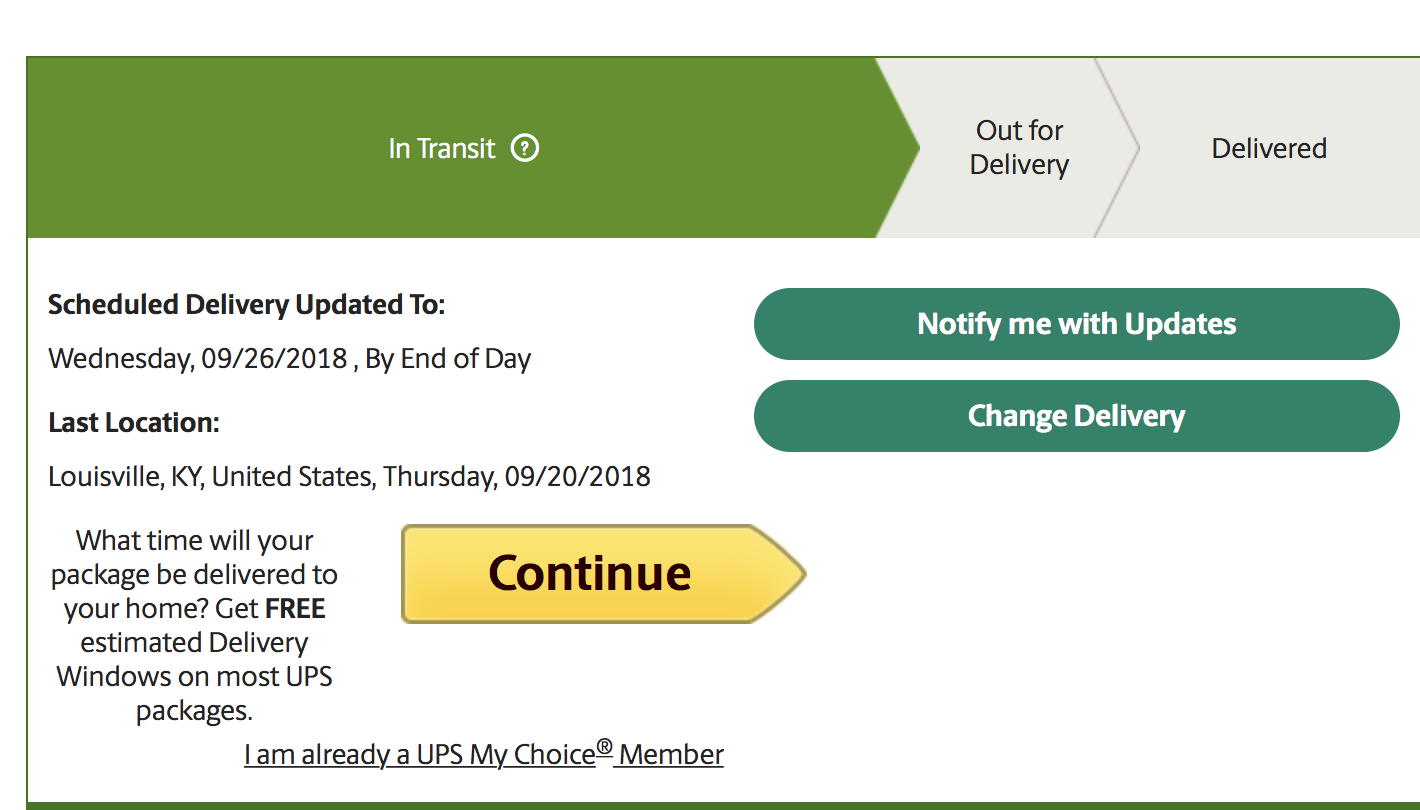 I was holding out hope for a Louisville departure tonight but haven’t seen one yet. It wouldn’t take them long to get to my local hub from there. If they’d left tonight I’d have a decent chance of getting it tomorrow.