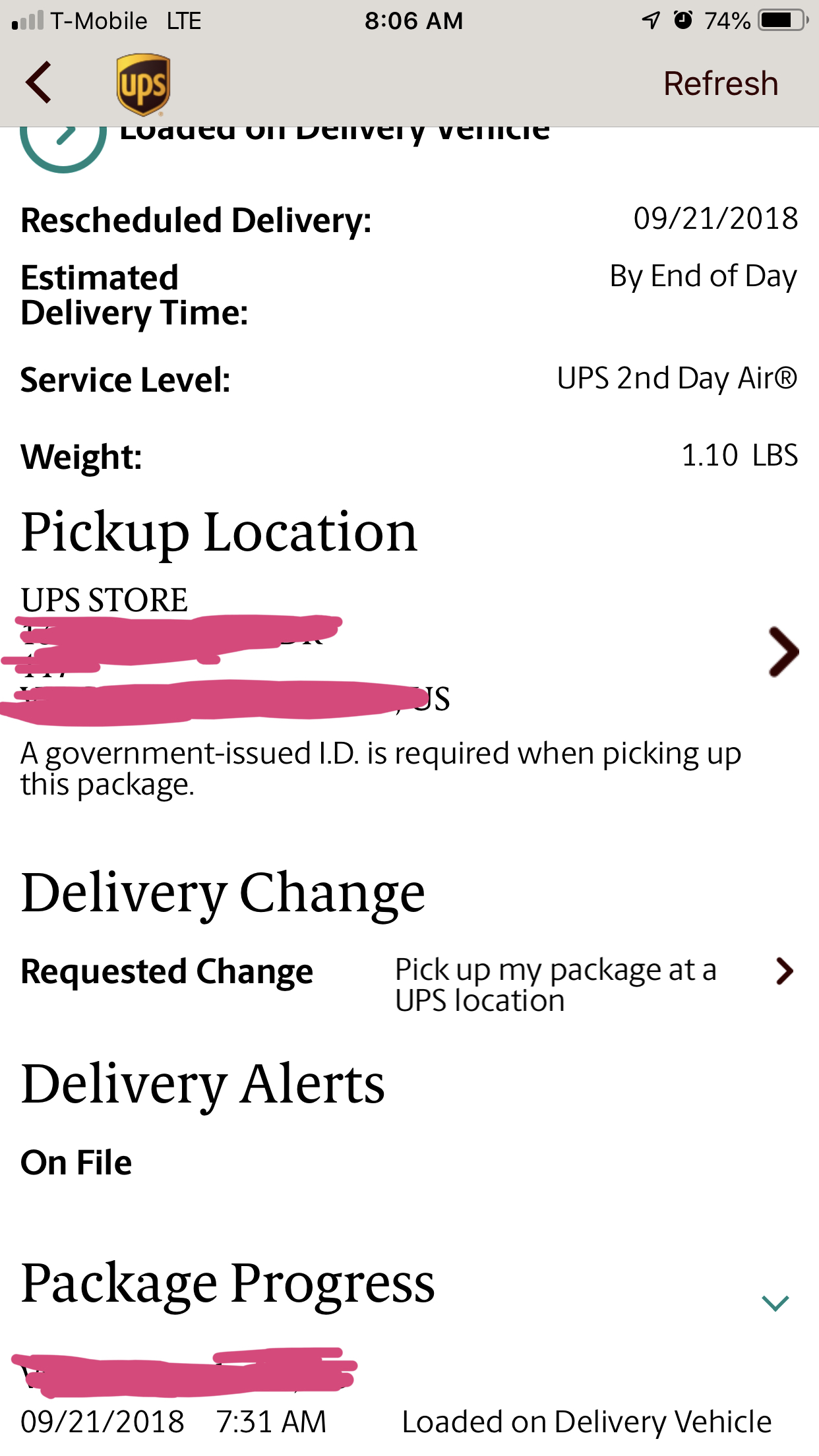When did you request the change?This is what I'm getting now. Was scheduled delivery for today until I requested it be held at ups to pick up. Now it's stayed like this since 1:30am.