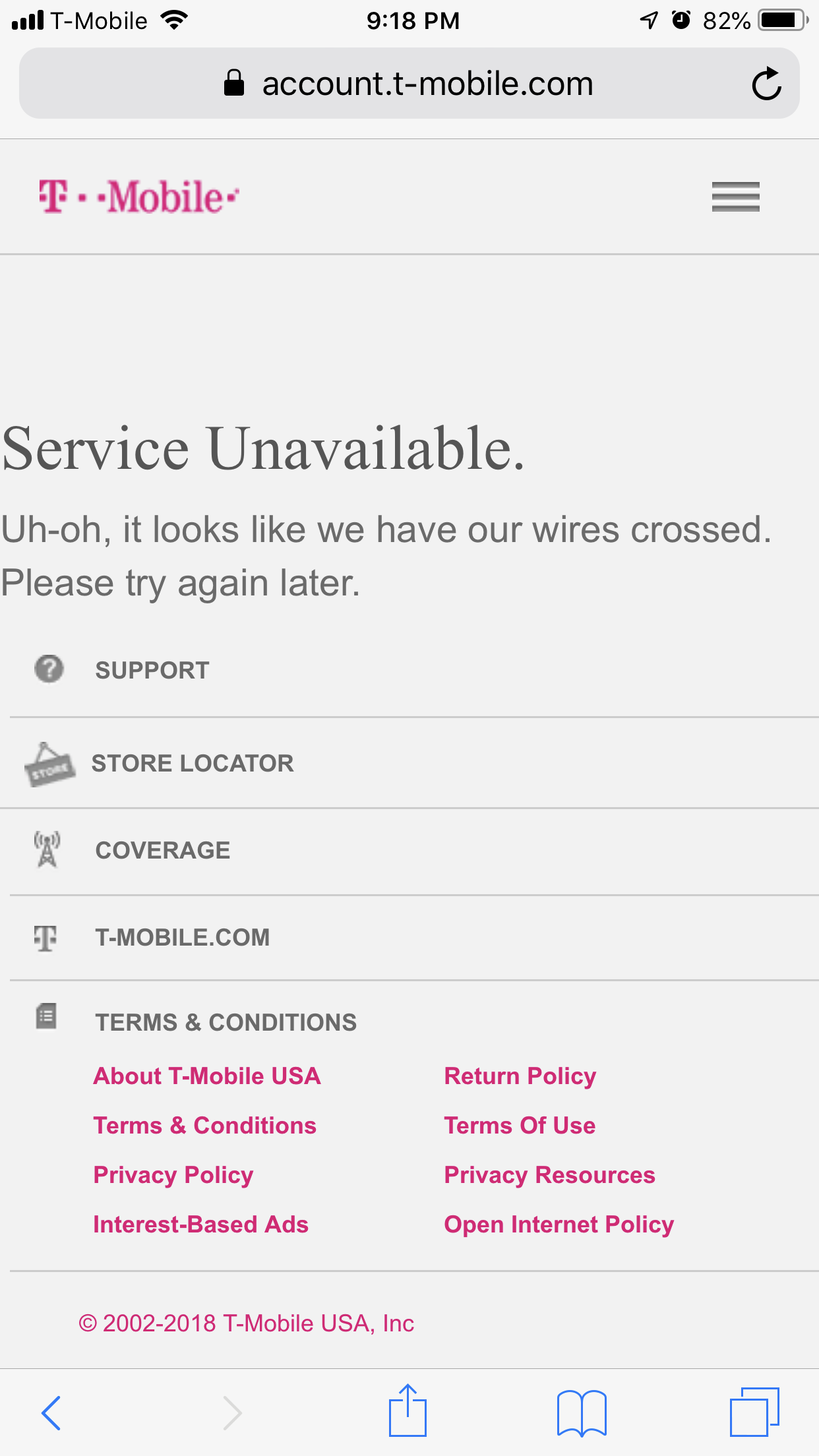 I just got a message that says "Service Unavailable" when I tried to load My T-Mobile.